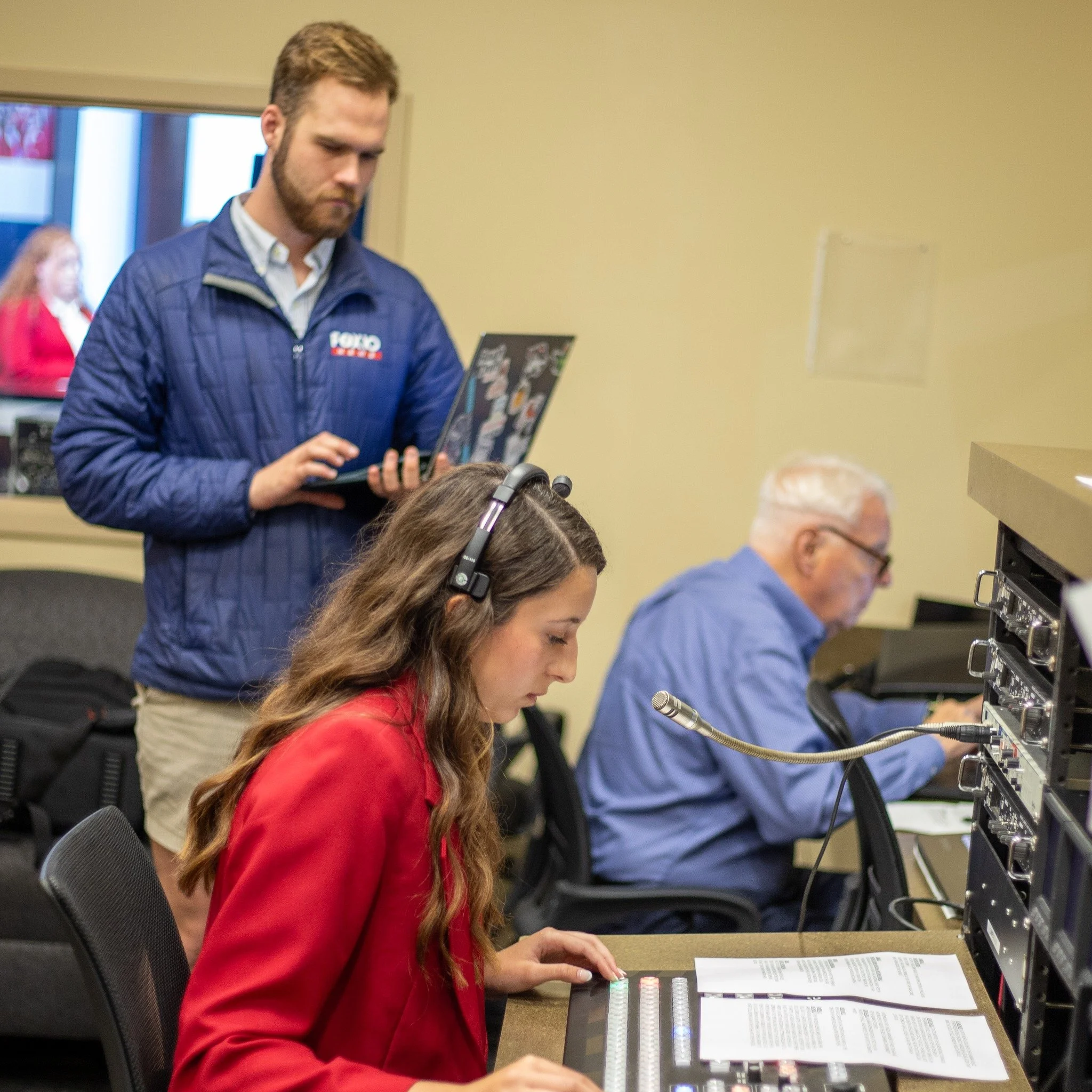 9:50 am - The first team is making their way to the studio. I expand the time between the preproduction window and the team’s studio times because of the amount of time it takes to travel between the building and get all of the stuff done before the teams can compete. That pays off with the first group because while the school had an engineer come and make sure everything was working, audio bit us. The Tricaster session we were using in the contest didn’t have the audio routed properly. So it took a little bit for us to figure out what was wrong. We paused the clock for 10 minutes or so while we worked it out.